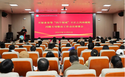 会上,刘勇宣读了《中共广西自然资源职业技术学院委员会开展食堂等“四个领域”不正之风和腐败问题专项整治工作方案》,对学院食堂、超市(小卖部)、基建工程、设备采购“四个领域”专项整治工作进行具体部署推进。